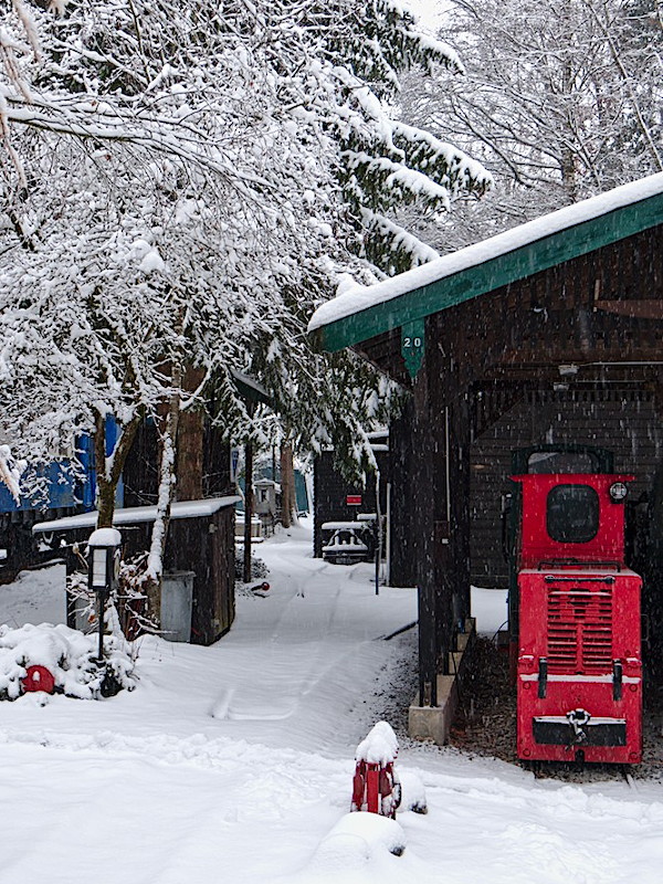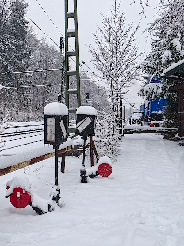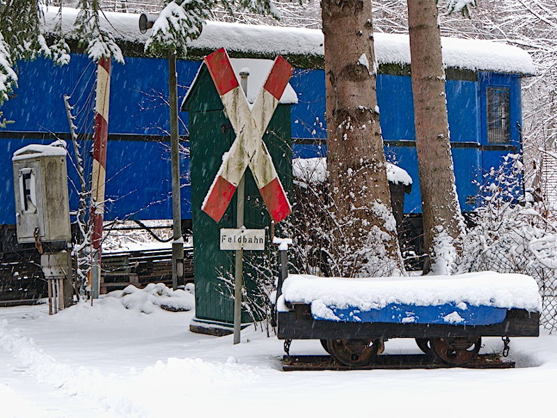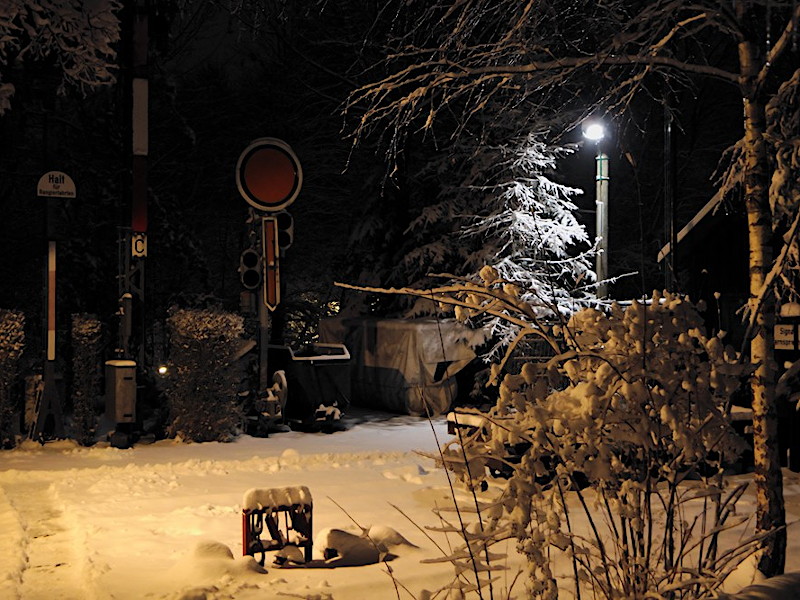 Ein Klick auf das Bild vergrößert es. Eurocity Express am Museumsgelände Museumsgelände im Winterschlaf Am Lok-Unterstand Weg am Lokschuppen Lokschuppen Rückseite Andreas-Kreuz an der Haltestelle Blick auf das Kassenhaus Weichen-Laternen Licht- und Formsignale Museumsgelände bei Nacht