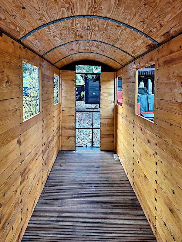 nachdem der Wagenkasten erstellt war noch nachgeschliffen, so dass noch im Jahr 2025 der Innenraum lasiert werden konnte.