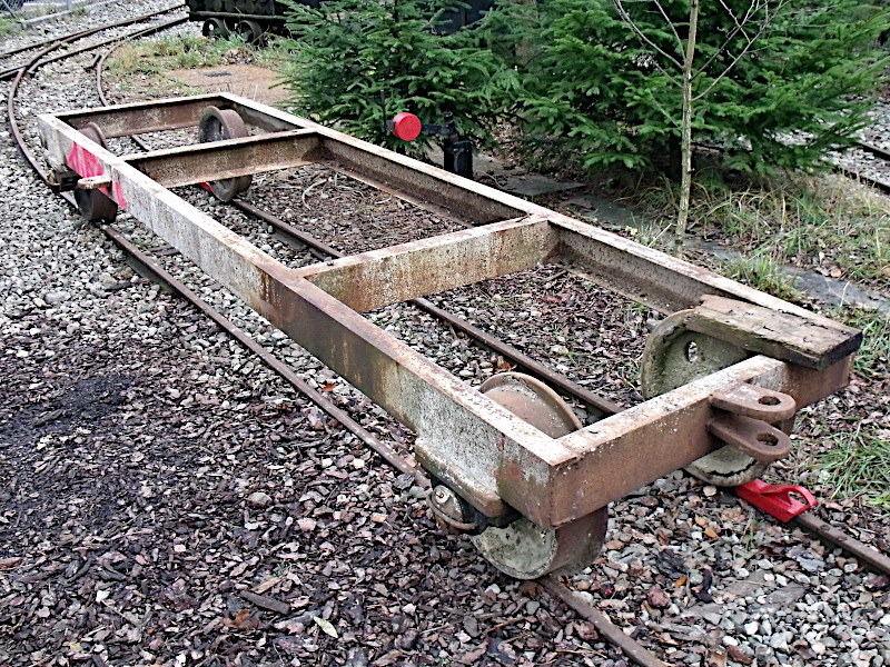Trucks-Drehgestellen entsteht der Rahmen. Für die Pufferbohlen wurden die Rungen der Trucks verwendet.